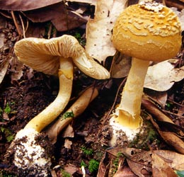 BRIEF DESCRIPTION: The fruiting bodies of A. pseudogemmata are small to medium-sized. The cap is 40-90 mm wide, convex to applanate, yellowish to pale yellow-brown, paler towards the margin; its margin is short-striate; it is covered with brownish grey to olivaceous brown verrucouse to farinose volval remnants. Its trama is white.