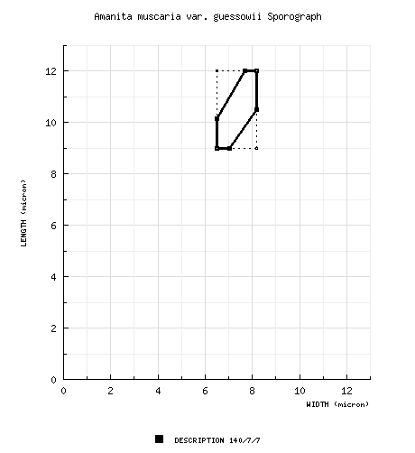 Amanita muscaria var. guessowii is the common, bright yellow and/or yellow and orange fly agaric of eastern North America. The European name A. muscaria var. formosa Pers. has been mistakenly applied to this taxon. Some macroscopic dimensions in the following are taken from (Jenkins, 1977). |